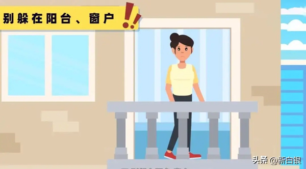 別躲在陽臺、窗戶附近:陽臺承重相對較弱,窗戶玻璃破碎也會造成傷害。