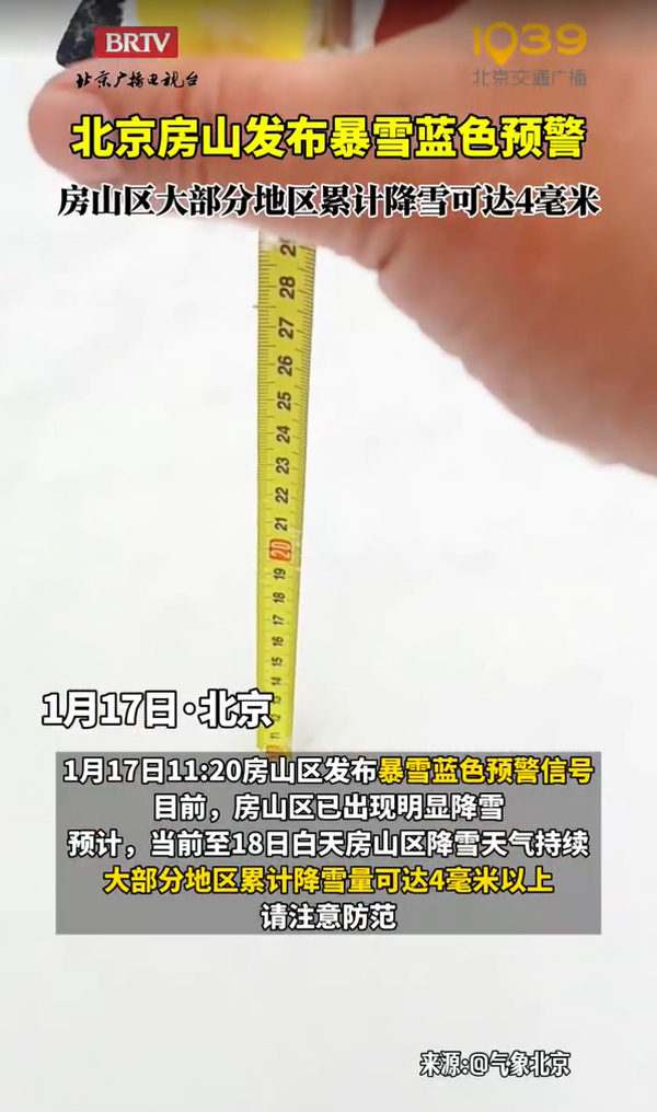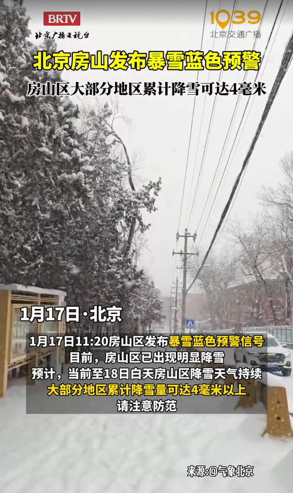 房山暴雪藍(lán)色預(yù)警!雪量4毫米以上,出行請(qǐng)注意