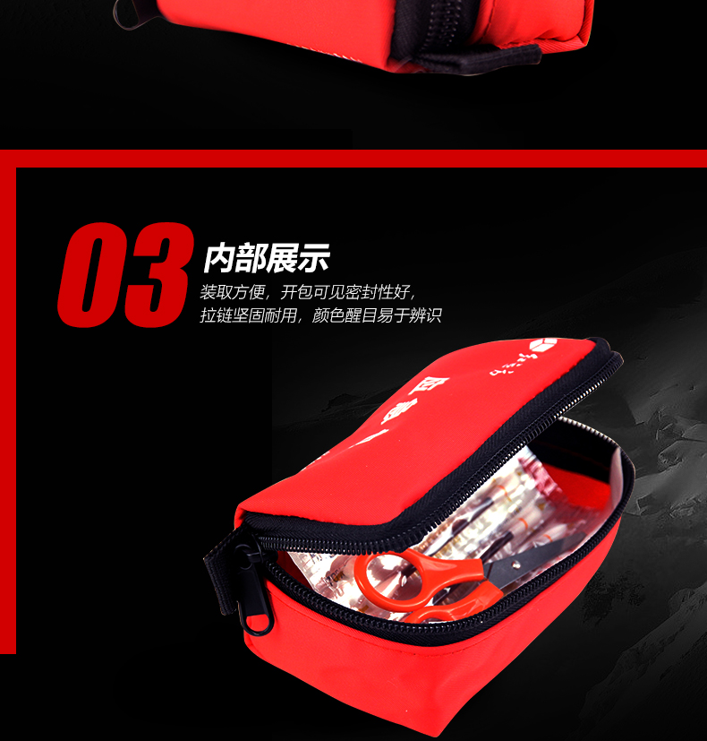 外包材質(zhì):600D滌綸            顏色:紅色型號(hào):RCH-003便攜急救包